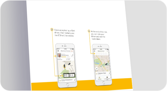 MOBILE APP HANDBOOK (for Users) Page 16 Page 184 Once accepted by a Gett 5 At the end of the ride, driver, their details and you can rate your live ETA will be visible. driver and see the route taken. 11