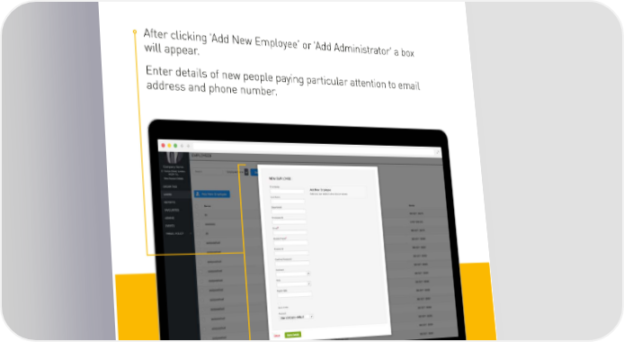 After clicking ‘Add New Employee’ or ‘Add Administrator’ a box will appear. Enter details of new people paying particular attention to email address and phone number. 26