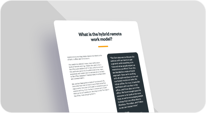 Hybrid remote working simply means that there’s a mix of both in-office and remote work. The pandemic ushered in new, never-before-seen levels of remote working. People who used to be in the office were suddenly WFH. Now, with the worst of this particular pandemic (hopefully) behind us, many executives and leaders want to see people come back to the office, because of improvements in collaboration and communication. But, workers have gotten a taste of remote work life. And while they may not want to work from home five days a week, they also don’t want to completely give up remote working. Enter the hybrid remote work model. While some companies are returning to a full five days in the office, many are going hybrid. “The first step was to discuss the options with our teams to get a general understanding as to how and what people expect as restrictions are lifted. From this, we decided to create a hybrid approach. Now, we’re working with all staff members to iron out our hybrid model and what the ratios will be. For now, it looks like we’ll stick with two days in the office, and three days out of the office. We have enough space for everyone to be back at the same time, so we’re encouraging people to keep their two office days to Mondays, Thursdays, and Fridays so we can interact more.” Robert Hourie, Director of Data, Infrastructure, and Security Recruitment at GemPool What is the hybrid remote work model? 6 gett.com