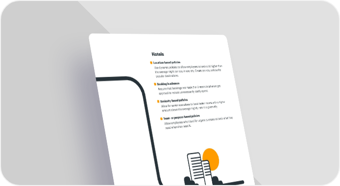 Hotels Location-based policies Use dynamic policies to allow employees to book a bit higher than the average night per stay in any city. Create per-city policies for popular destinations. Booking in advance Require that bookings not made 2 or 3 weeks in advance get approval to reduce unnecessarily costly spend. Seniority-based policies Allow for senior executives to book better rooms with a higher amount above the average nightly rate in a given city. Team- or purpose-based policies Allow employees who travel for urgent purposes to book what they need when they need it. With manual booking and accounting processes, your company lacks cost-savings opportunities because you can’t control or optimize your operations. With the right technology and approach, you can get back to traveling with a lower budget than before. 16